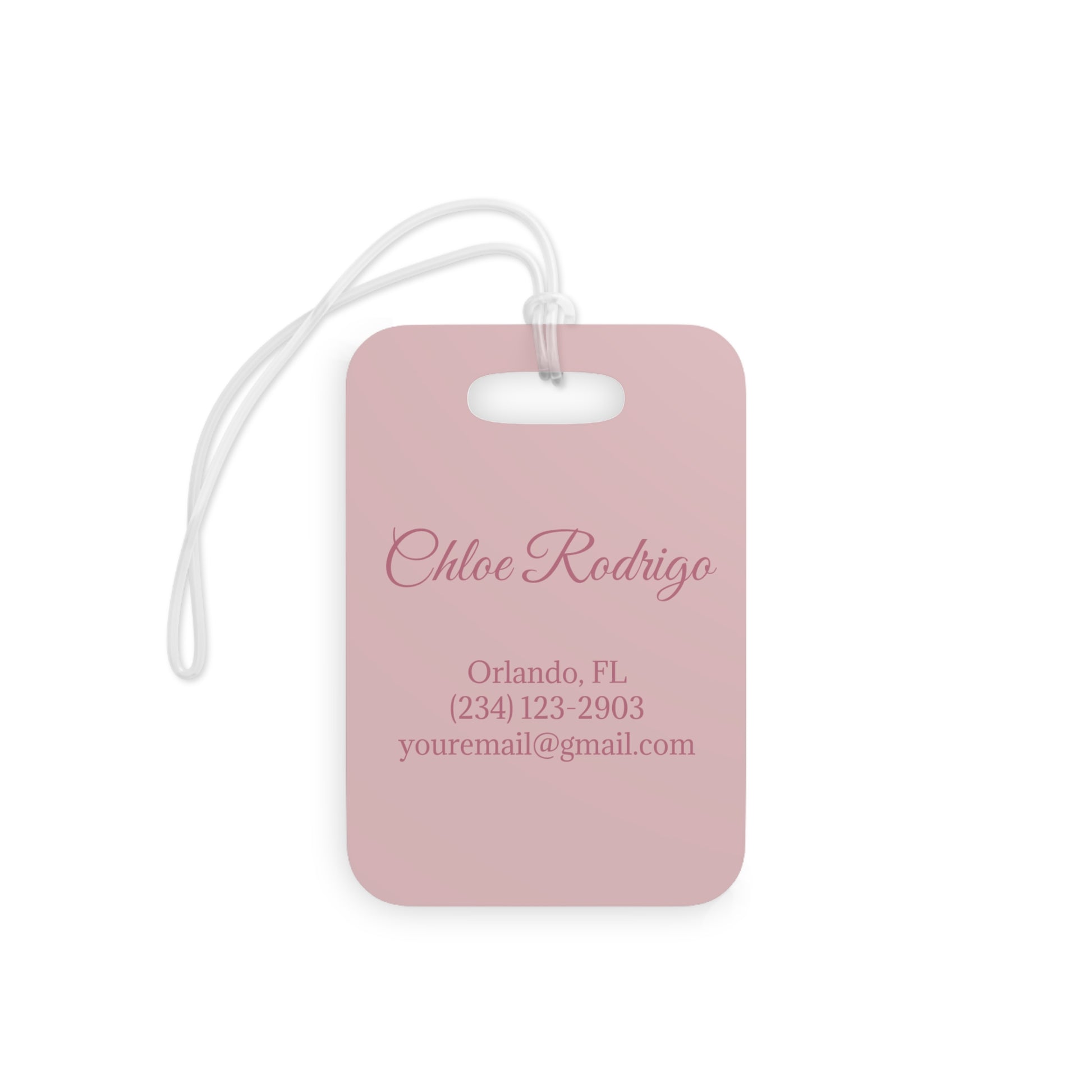 Large Pink Chic Travel Tags that are customizable, perfect for adding a stylish and personal touch to your luggage. Ideal for frequent travelers looking to stand out and easily identify their bags. Great for gifting on birthdays, holidays, and special occasions.